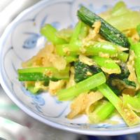 - 2 鍋にお湯を入れ沸騰させ、塩と小松菜を入れて20秒程ゆでます。火が通ったらお湯を切り、粗熱を取ります。