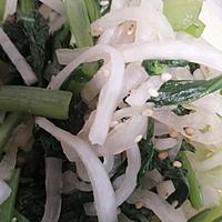たべれぽを拝見して大根の水気はかなり絞ったらシャキシャキにできた!個人的に、味はほうれん草の胡麻和えには少し劣るけど美味しい。食感が楽しい!