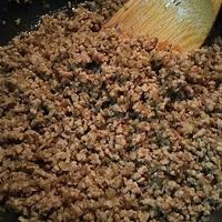 - 4 香りが立ったら1を加えて中火で炒め、玉ねぎがしんなりとしたら豚ひき肉を加えて中火で炒めます。