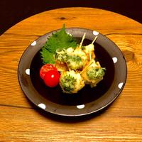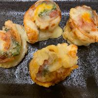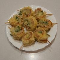 しゃきしゃき食感と梅味が最高。つま楊枝がなくパスタで代用、下ごしらえをして時間が経ちパスタがふにゃふにゃに。揚げても形はキープできていて良かったです。