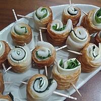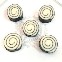 - 4 1、3、2の順に重ねてくるくると巻き、つまようじで留めます。