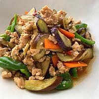 - 7 ナスに火が通ってきたら、調味料を入れ、全体に味がなじんだら火から下ろします。器に盛り付けて完成です。