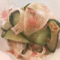きゅうり塩もみなし、角切り新玉ねぎ使用。わさびとごま油もプラス。シャキシャキ楽しい食感♪♪新玉ねぎでも辛みは強め✨わさびでさらに辛み引き立つ!笑美味しかった( *ˊᵕˋ*) 〜ᐝ