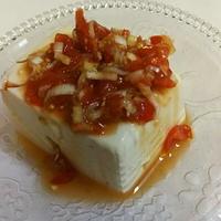 - 3 お皿に水気を切った絹ごし豆腐を乗せ、2をかけて完成です。