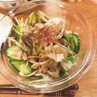 キュウリは無し、しめじは舞茸で代用して作りました。サッパリとバクバク食べれます!