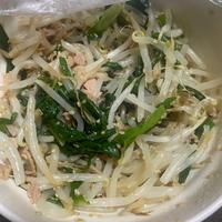 - 2 耐熱ボウルに1、もやしを入れて、ふんわりとラップをかけ、600Wの電子レンジで3分程加熱します。
