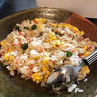 - 7 長ねぎに焼き色がついたら中火のまま、ごはん、カニカマ、5、(A)を入れ炒め合わせます。