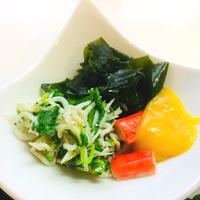 - 3 ボウルに(A)の材料を入れてよく混ぜ、2、しらすを入れてよく和えます。全体が混ざったらお皿に盛り付けて完成です。