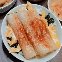 ご飯の上に錦糸卵と海苔をちらして、ちくわ蒲焼きをon!残っていた蒲焼きのタレもかけて、山椒をかけたらウマウマでした(*^^*)作っていて楽しかったし、簡単節約レシピで好評でした♪