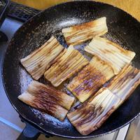 - 4 中火で熱したフライパンで3を焼き、焼き目が付いたら取り出します。