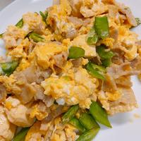 - 5 中火のまま、菜箸で混ぜながら炒り卵を作ります。全体に馴染ませるようにさっと炒めたら器に盛り付け完成です。