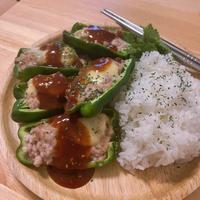 ピーマンの肉詰め食べたくなったから作ってみた。これからはチーズをかけて食べることにしよう。