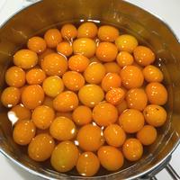 金柑酒を作ったあとに引き上げた金柑に水飴ときび砂糖、金柑酒投入で煮詰めました。ウマウマ=^-^= ♪♪