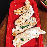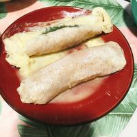 巻くのが面倒だったので、ササミを叩いて薄く平たくし、大葉とチーズをサンドしてフライパンで焼いた。想像以上にメッチャ美味しい!!
