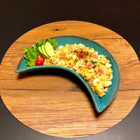 ガーリックバターと醤油の相性抜群の味付けに、コンソメの旨味が加わった王道の炒飯です。卵液でコーティングすることでパラパラの食感が実現。ベーコンの旨みがご飯に染み込み、シャキシャキのレタスとの食感のコントラストが絶妙です。レタスは火を止めてから混ぜ込むのがポイント。パプリカやネギを加えても美味しく、簡単に作れるのも魅力です。