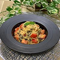 バジルの代わりに大葉で。カッペリーニを冷水で冷ましてから和えました。夏なのでさっぱり、めんつゆだけ、和えるだけと簡単なので暑くもなく良かったです。粉チーズがよく合う。リピ〇