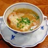 玉ねぎをじっくりと炒めて甘さを引き出し、スープにしました。上にかけたチーズがスープとよく合います。食パンが入っているので、小腹が空いたときにぴったりです。食パンの代わりにフランスパンを使ってもおいしいですよ。