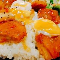 おうちで簡単 ファミチキの温玉アジアンチキン丼 レシピ・作り方