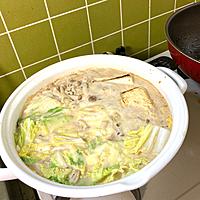 - 4 土鍋に水、顆粒和風だしを入れて中火で加熱します。煮立ってきたら3、2を入れ、蓋をして5分ほど煮ます。
