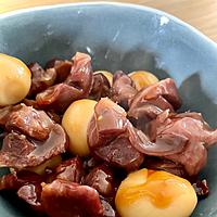 ウズラの卵は入れてませんが、砂肝スライスで、少量のお酢とおろしニンニクを足して作ってみました。