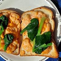 時短ポテトサラダグラタントースト 3分 ポテトサラダに明太子崩して混ぜてトーストで焼くだけ