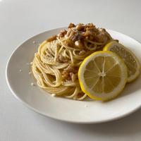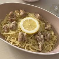 シンプルだからこそ素材が生きるレモンパスタです。鶏肉が良いアクセントに!