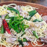 紫蘇たっぷり!豚バラとオクラのペペロンチーノ レシピ・作り方