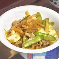 絹さや、玉ねぎ、キャベツを加えて野菜ましましにしました♪
