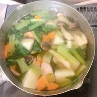 寒い日にささっとできる温かいスープです。ニンジンやキャベツなど、冷蔵庫の残り野菜でアレンジできます。トマトを入れるとミネストローネ風なりますし、卵を入れるとボリューム満点のスープにもなります。