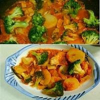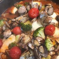魚は一口サイズに切り、アサリでなく、シーフードミックスを入れて作りました。
