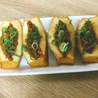 たべれぽ参考に、厚揚げを焼いてから納豆を詰めて食べる直前にトースターしました!