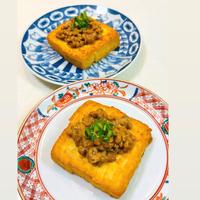 先に切り込みを入れた厚揚げだけを焼いて、後から具を入れて軽くレンジでチンしました。