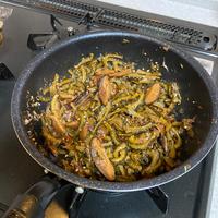 煮詰めました。仕上がりに鰹節と白ゴマをかけて出来上がり!