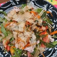 余ってたピーマンも細切りにしてにんじん達と一緒に茹で、豚肉の代わりに鶏ムネ肉を茹でて使いました。さっぱり感上がって美味しかったです。