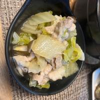 春菊と豚バラ肉のあっさり煮込み レシピ・作り方