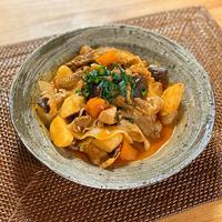- 3 焼き色がついてきたら、1と調味料を加え、火が通るまで中火のまま10分程煮て、火から下ろします。
