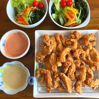 リピです♪ ブライン液に1日つけてから、胸肉半分、ささみ半分で片栗粉のみで!ディップも含めて美味しい(*ˊᵕˋ*)