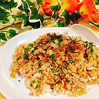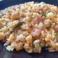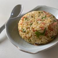 - 5 3を入れて、ごはんがパラパラになるまで中火で炒めたら火から下ろします。器に盛り付けてできあがりです。