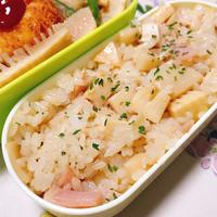 みんな大好きなバターしょうゆ味のごはんをちょっとリッチに進化させたレシピです。 タケノコとベーコンは意外と相性がいいんです。 和食のような洋食のような不思議なお味をお楽しみください。