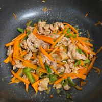 - 5 1を入れて中火で炒め、にんじんがしんなりしてきたら3を入れて炒めます。全体に味がなじんだら火から下ろします。