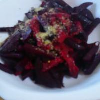ビーツは生のまま、フライパンで炒め火を通して下さい。歯応えと食感が損なわれず、オススメです。 砂糖は加えず、十分に甘味が感じられます。