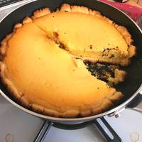 フライパンで簡単に作れる、チーズケーキのご紹介です。サクサクのタルト生地と、とろっとなめらかなチーズフィリングがとってもおいしい一品です。お好みでフルーツをトッピングしたり、ジャムをかけてもおいしいですよ。お手軽にお作りいただけますので、ぜひお試しくださいね。