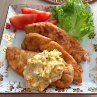 筋取りをしたらササミが分裂してしまいましたが、とっても美味しくできました!下味は揉み込めば時間おかなくても大丈夫でした!タルタルはピクルスで作りました☆