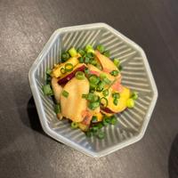 - 6 器に盛り付け、小ねぎを散らして完成です。