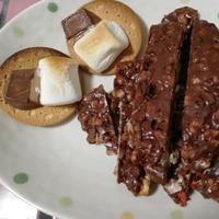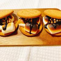 - 2 マシュマロに焼き色がついたら取り出し、上からビスケットを重ね、粗熱をとって出来上がりです。