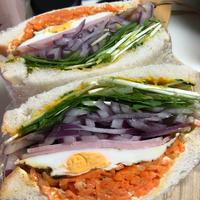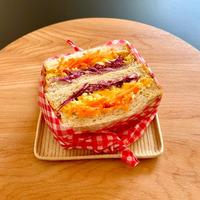 シャキシャキ野菜たっぷりのボリューム満点サンドイッチ!人参は酢でマリネして爽やかな風味に、紫玉ねぎは水にさらして辛みを抜くのがポイントです。マヨネーズとマスタードを多めに使うことで、具材の味わいがグッと引き立ちます。バターを塗った食パンとの相性も抜群で、野菜をたくさん食べられる満足感のある一品に仕上がります。お好みでベーコンやチーズを加えてもおいしくアレンジできますよ。