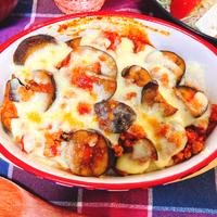 - 8 耐熱皿に4、7の順に入れ、ピザ用チーズをのせます。オーブントースターで表面に焼き色が付くまで10分ほど焼き、パセリをかけて完成です。