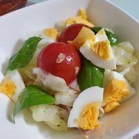 バジルなし、春キャベツで!いつも同じようなサラダばかりなので、たまにはこういうのも良いかもしれません。