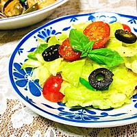 - 3 ボウルに1、オリーブオイル、2を入れ、バジルをちぎり入れて混ぜ合わせます。黒こしょうを加えて混ぜ合わせ、全体に味がなじんだら器に盛り付けて完成です。