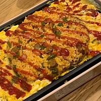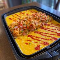 ふわふわの卵にチーズがとろ〜りとろける贅沢な一品です。ホットプレートで作るので、みんなでワイワイ楽しく調理できます。豚ひき肉やソーセージ、ミックスベジタブルなどお好みの具材でアレンジ可能。卵は混ぜなくても簡単に作れるため、お子様でも調理できます。コンソメやケチャップで味付けすれば、家族みんなが喜ぶ美味しさに仕上がりますよ。